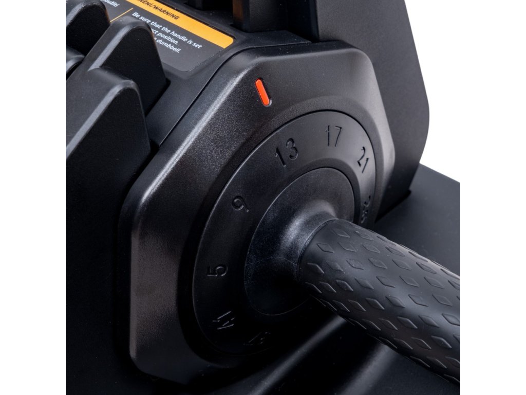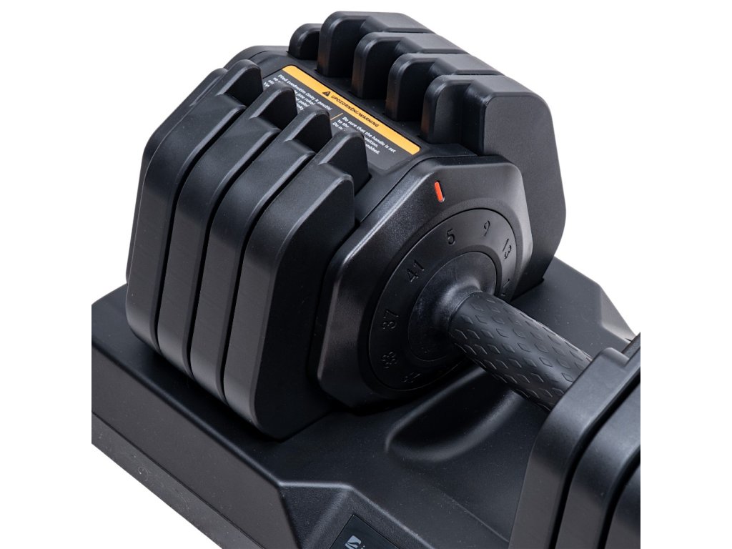 Ha a legmodernebb edzőtermi felszereléseket keresed, az inSPORTline DuraBell® 5-41 kg Állítható egykezes súlyzó szett mindenképpen ezek közé tartozik! Az egyedülálló terhelésbeállító rendszernek köszönhetően csak elfordítod a tengelyt, és máris készen állsz az edzésre! A helyes beállítás esetén egy „kattanást” hallasz, amely jelzi, hogy a kiválasztott terhelés rögzítve van. Ezután a súlyzó belsejében láthatod a pontos értéket kilogrammban kifejezve.