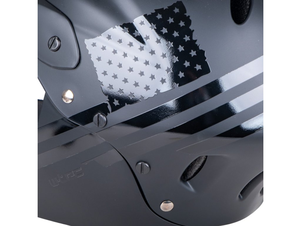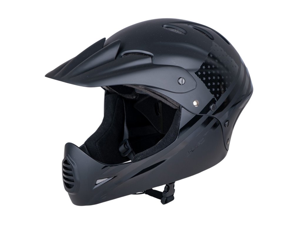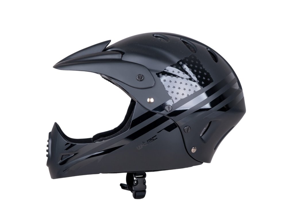 Downhill bukósisak W-TEC Campanero US Flag, állpántos rögzítés, 17 szellőzőnyílás, levehető napellenző, kivehető belső párnázás, EN 1078 szabvány