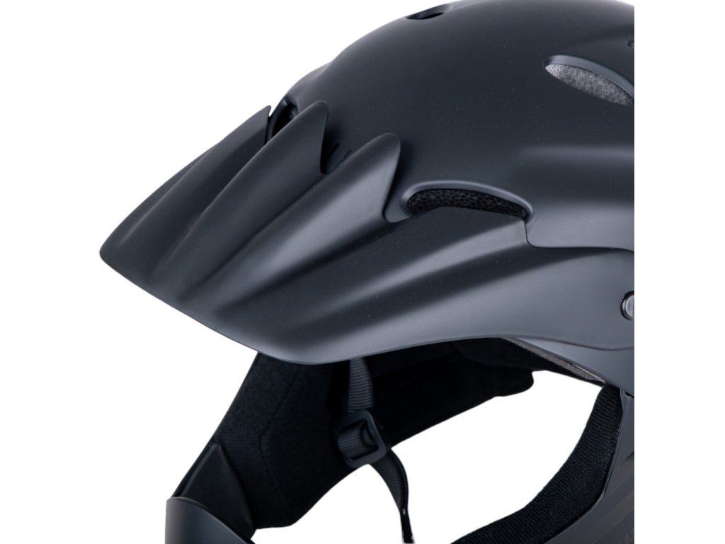 Az intuitív állpántos rögzítés és a kivehető belső párnázás nemcsak biztonságot nyújt számodra, hanem optimális kényelmet is garantál minden felhasználás során. A 17 egyenletesen elosztott szellőzőnyílásnak köszönhetően a levegő tökéletesen kering a sisak belsejében, így mindig kényelmesen és komfortosan érezheted magad. Fontos továbbá, hogy az állszellőzőnyílásokon egy rács is található, amely védelmet nyújt a felcsapódó törmelék ellen, így mindig biztonságban érezheted magad még kemény terepen is. A napellenző, akárcsak az állrész, könnyedén levehető, ami egy olyan előny, amit értékelni fogsz, különösen a motocross szemüvegek használatának lehetőségéhez hasonlóan.