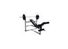 Egyenes fekpad, vastag párnázat, súlyzókkal való erősítéshez alkalmas.