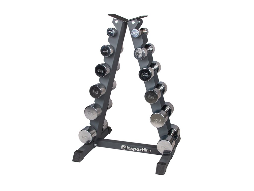 Elegánsan az "A" betű formájára épült, és lehetővé teszi a súlyzók egyszerű és hatékony tárolását akár kisebb helyen is. Ezenkívül az egyes párokat szépen, egymással szemben tárolhatja.