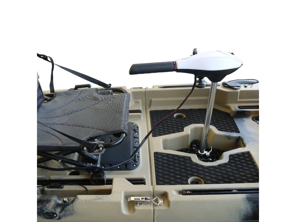 Első pillantásra visszafogott, de használat közben meggyőző. A motor halkan működik, így nem zavarod a halakat és a környezetet, mégis elegendő teljesítményt nyújt a magabiztos mozgáshoz. A kétlapátos propellert úgy tervezték, hogy még a sűrű vízi növényzetben is simán menjen anélkül, hogy az algák belegabalyodnának, biztosítva ezzel a zavartalan utazást. Könnyű kialakítása maximalizálja a motor hatékonyságét, így kíméli az értékes akkumulátorkapacitást, hogy tovább élvezhesd a vízen töltött időt.