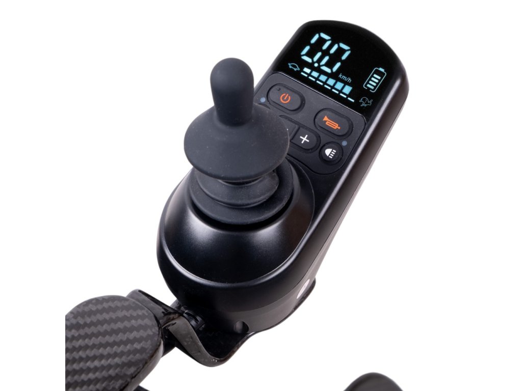 Elektromos karbon kerekesszék inSPORTline Feally, joystick vezérlés, elektromágneses fékek, biztonsági öv, 20–25 km hatótáv