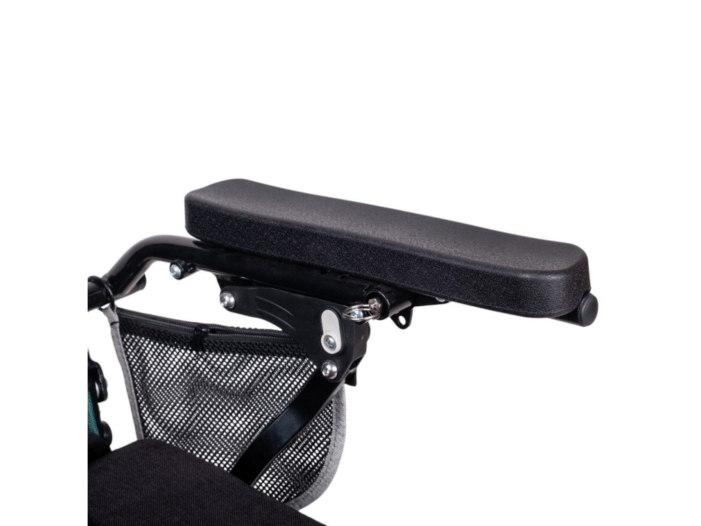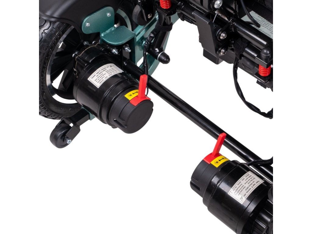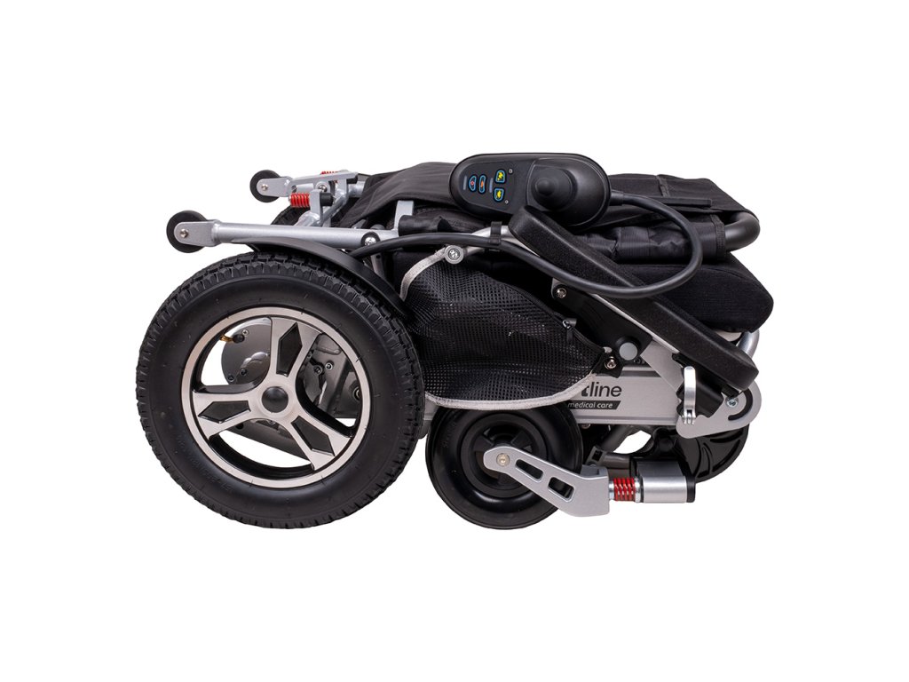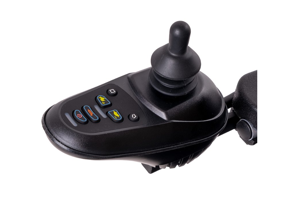 A vezérlés egyszerű, és egy joystickkal történik, amely a jobb és a bal kartámaszon is elhelyezhető. A 6 km/h-s végsebességgel mindenki elboldogul vele. Ráadásul, ha a felhasználónak segítségre van szüksége, egy második személy is működtetheti a kerekesszéket a távirányító segítségével. Ha az elektromos meghajtás ki van kapcsolva, a kerekesszéket tolni is lehet. A praktikus, cipzáras alsó táska is garantáltan tetszeni fog.