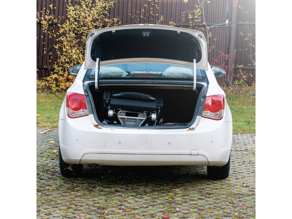 Az ötletes összecsukható mechanizmusnak köszönhetően a kerekesszék pillanatok alatt kompakt méretűre összecsukható. Annyira kompakt, hogy kényelmesen elfér az autó csomagtartójában, ami igazán egyedülállóvá teszi az ilyen típusú eszközök között! Ez hatalmas előny, ha rokonokkal vagy barátokkal szeretnél kirándulni, ahol szükség lesz rá.
