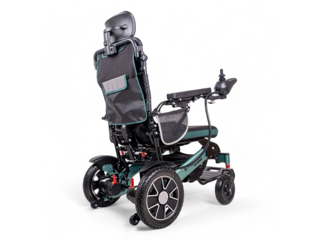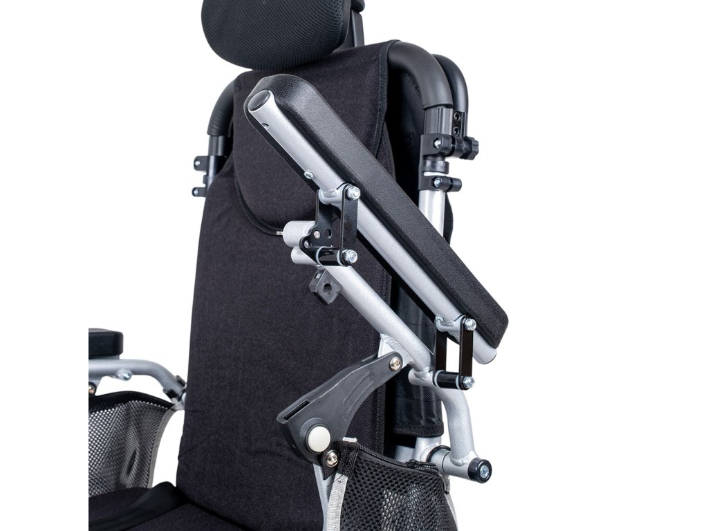 A kerekesszéket a felhasználóknak és a mozgáskorlátozottaknak szánják, az ő igényeikhez igazítva. Az elektronikusan állítható háttámla lehetővé teszi a kényelmes ülést, míg az üléstámlák igény esetén könnyen hátradönthetők. A lábtartó is állítható magasságú. A joystick enyhe elfordításával teljes mértékben irányíthatod a kerekesszéket - semmi másra nincs szükséged a működtetéséhez.