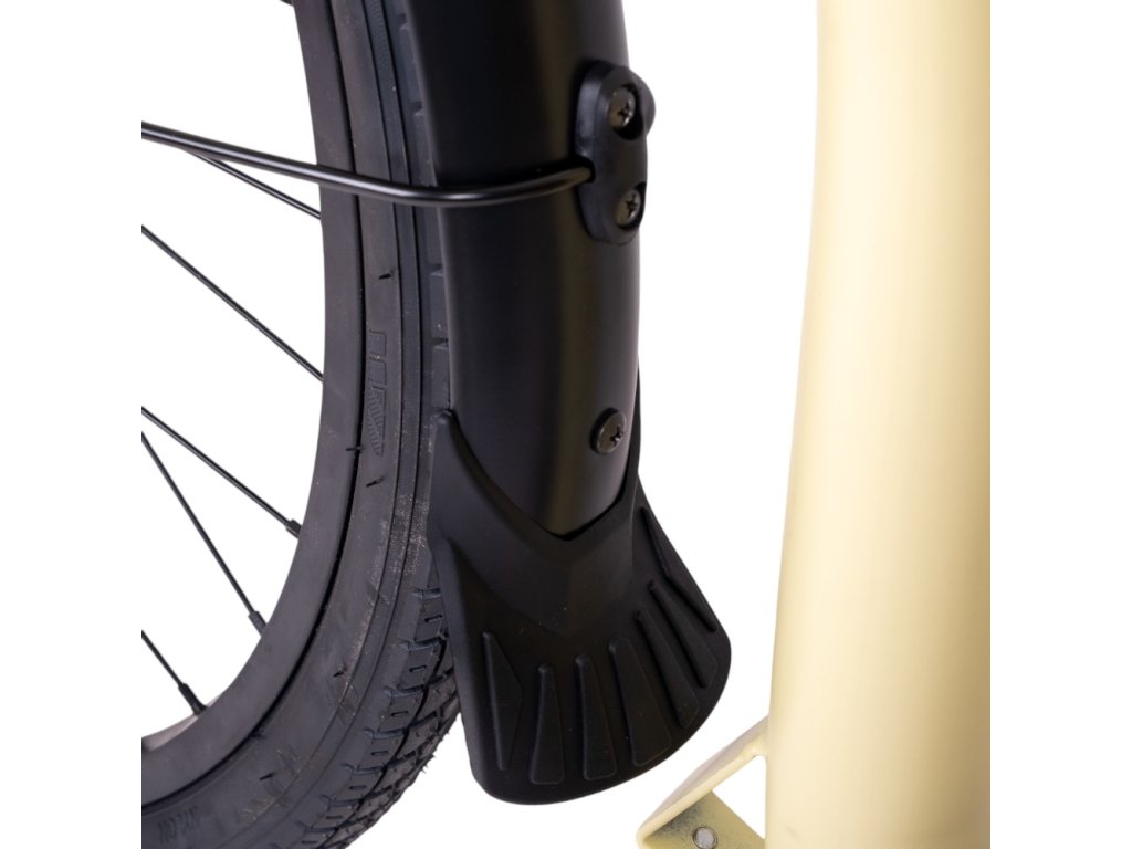 A csavarozható első villával és rugókkal felszerelt sárvédő tartós acélból és PVC-ből készült, ami nem növeli meg a roller súlyát, de maximális védelmet biztosít.