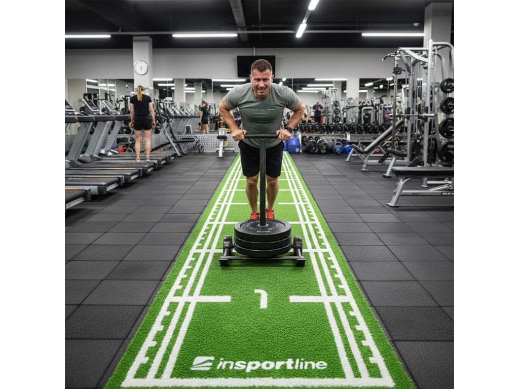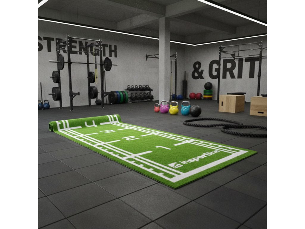 Fitness szőnyeg inSPORTline Graspet 10,2x2 m, csúszásmentes aljzat, numerikus skála, fehér jelölések, tartós anyag, ideális súlyszánkókhoz, 43 kg