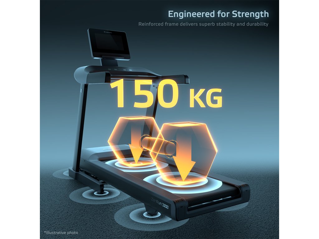 Az inSPORTline ZenRun 300 igazán kemény edzésekkel is megbirkózik. Nagy teljesítményű, 4,5 LE-s váltóáramú motorral rendelkezik, amely akár 22 km/h sebességet és 15 fokozatban elektronikusan állítható emelkedőt kínál. A tágas, 150 x 56 cm-es futófelület természetes lépést biztosít, és rengeteg helyet ad a futáshoz és a gyalogláshoz. Az ütéscsillapító rendszernek köszönhetően minden lépés lágy és kíméletes az ízületeidhez, míg a 150 kg teherbírású, masszív konstrukció maximális stabilitást és biztonságot garantál.