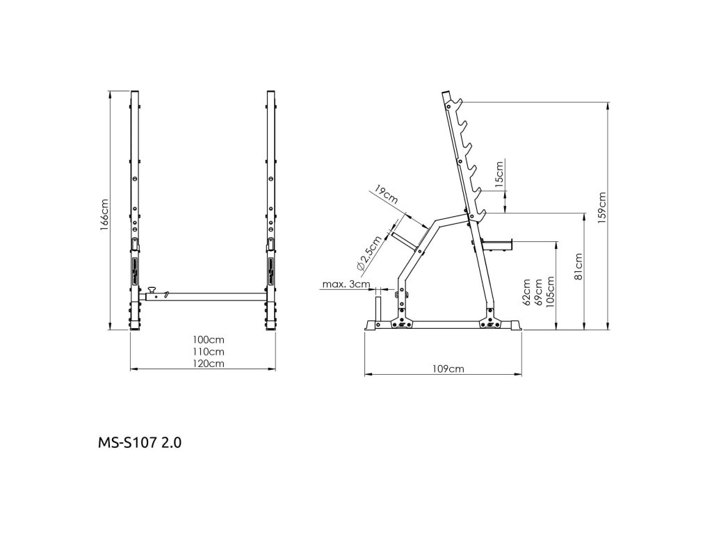 Műszaki adatok – Marbo Sport MS-S107 2.0 állítható biztonsági állvány
