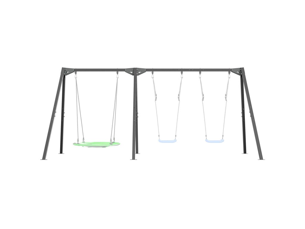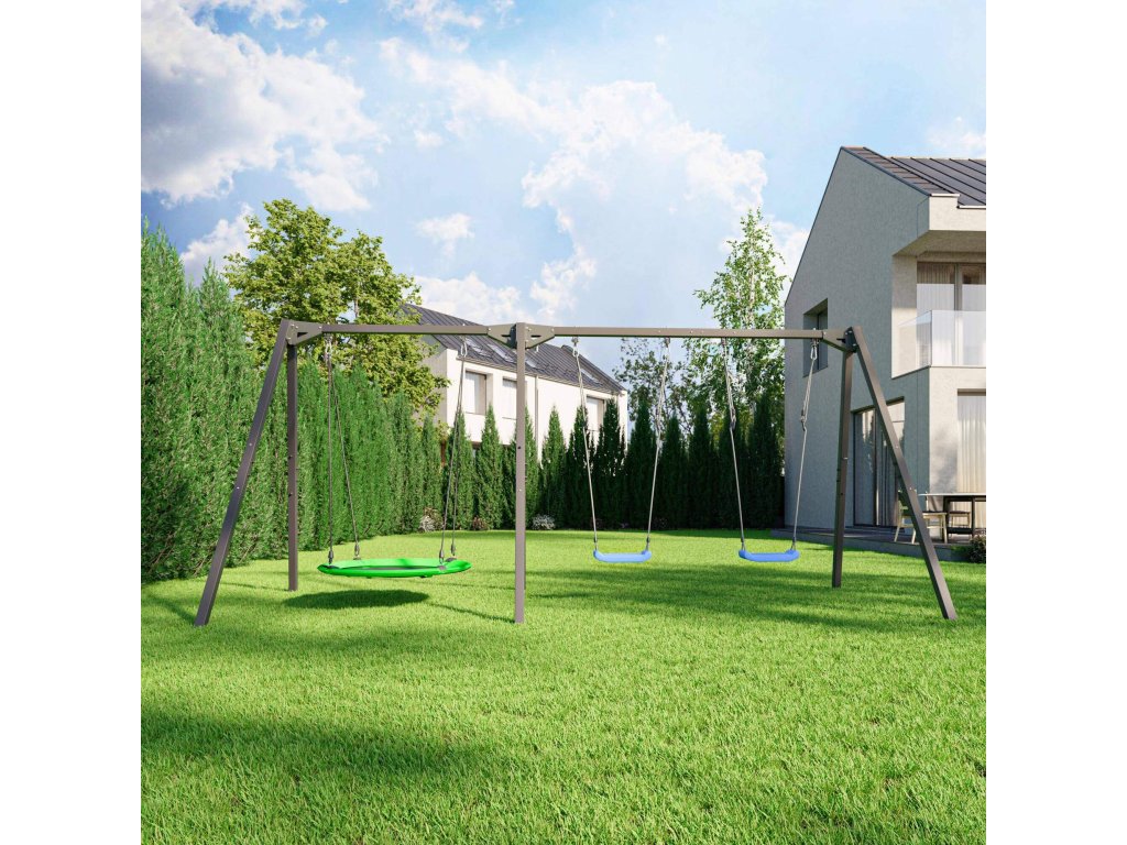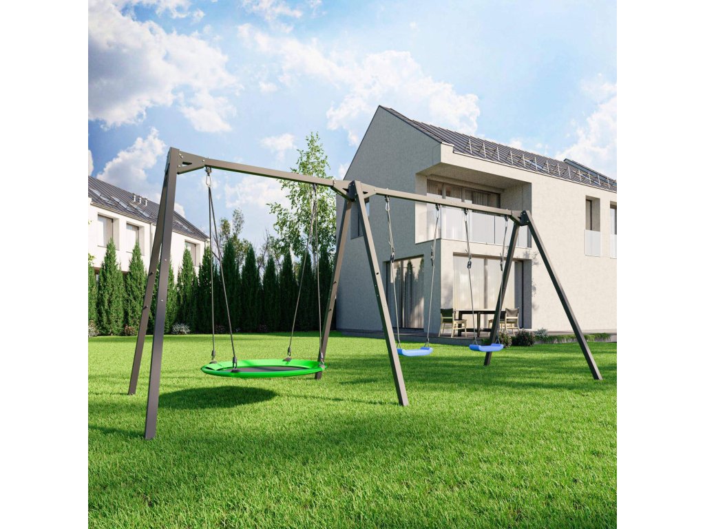 A PREMIUM MO-014 háromállású hintaváz a Marbo Sporttól kiváló választás mindenféle játszótérre, parkba, óvodába vagy akár magánkertekbe is. A három különálló felfüggesztési pont lehetővé teszi, hogy akár három személy egyszerre használja. A dupla felfüggesztésű hely akár függőágy rögzítésére is alkalmas lehet.