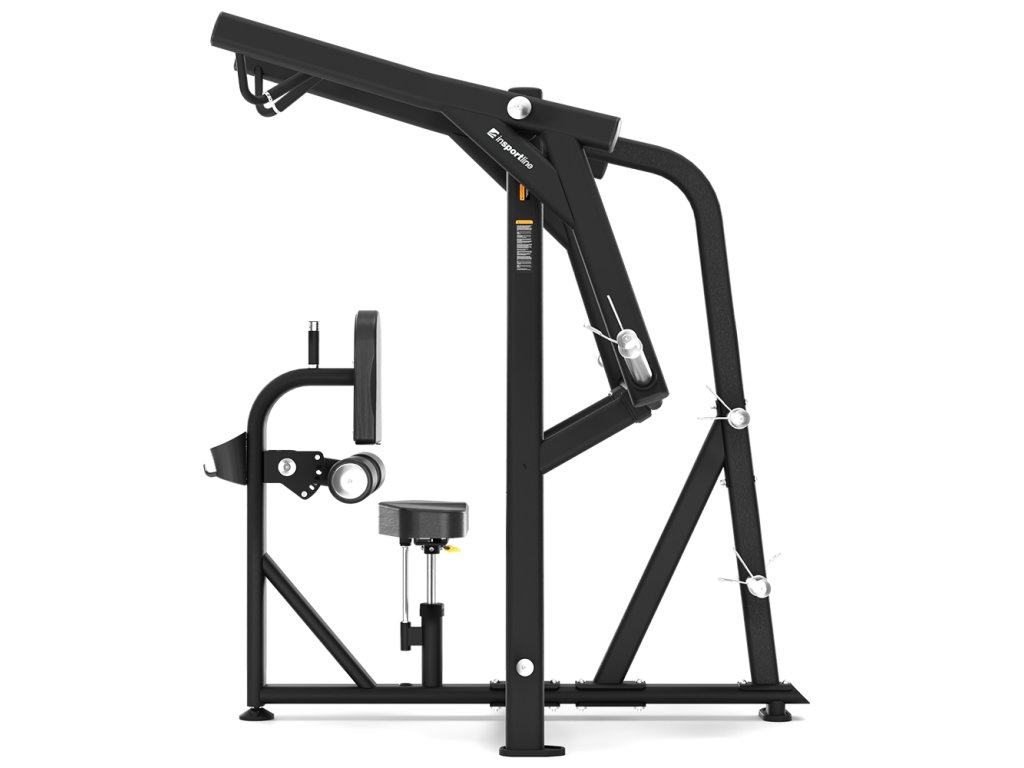 Hátizom gép inSPORTline Velocer plate loaded, tartós fémkeret, nagy sűrűségű ergonomikus párnázás, állítható ülés