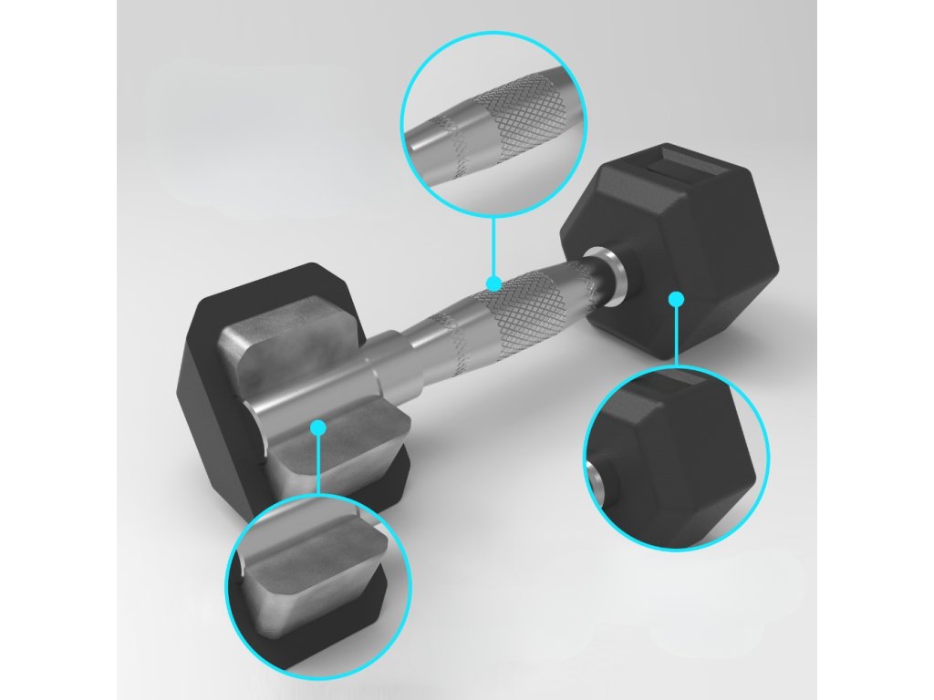 Hatszögű kézisúlyzó inSPORTline Hexclusive 30 kg, ergonomikusan kialakított csúszásmentes fogantyú, tartós felület, precíz kivitelezés