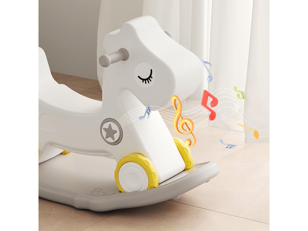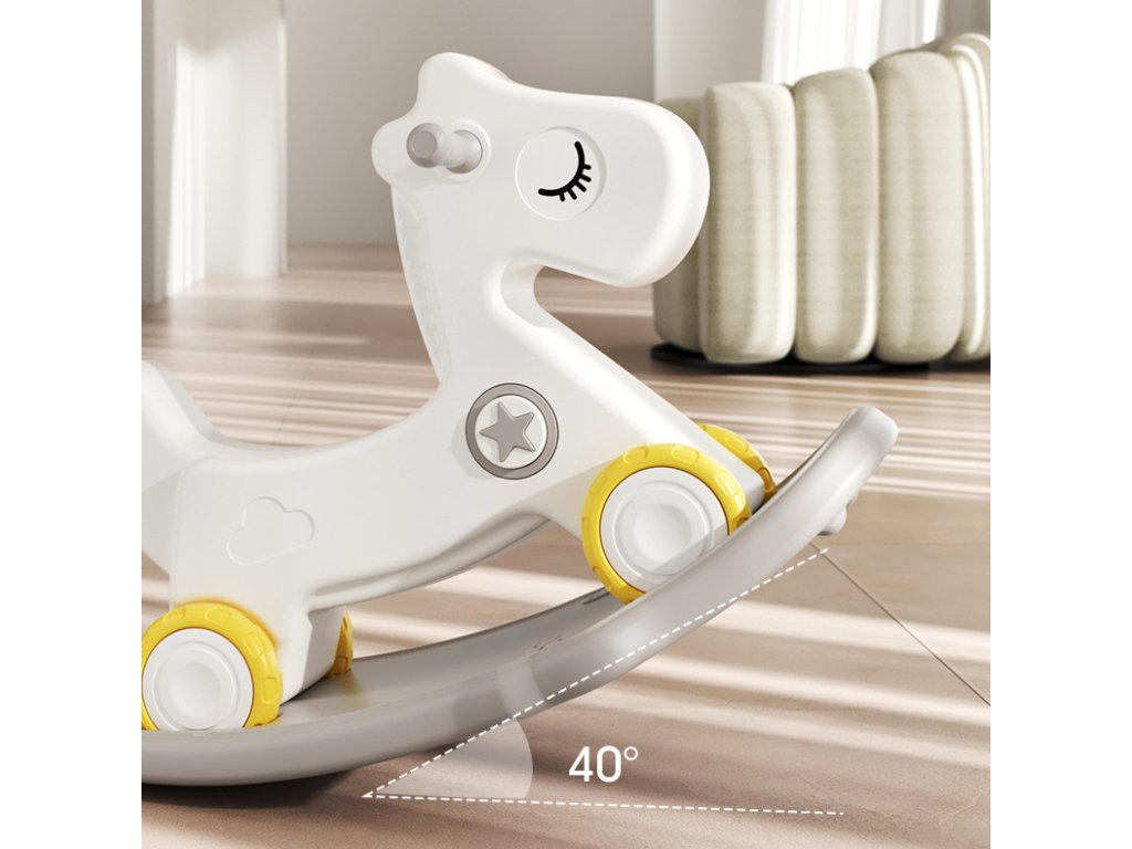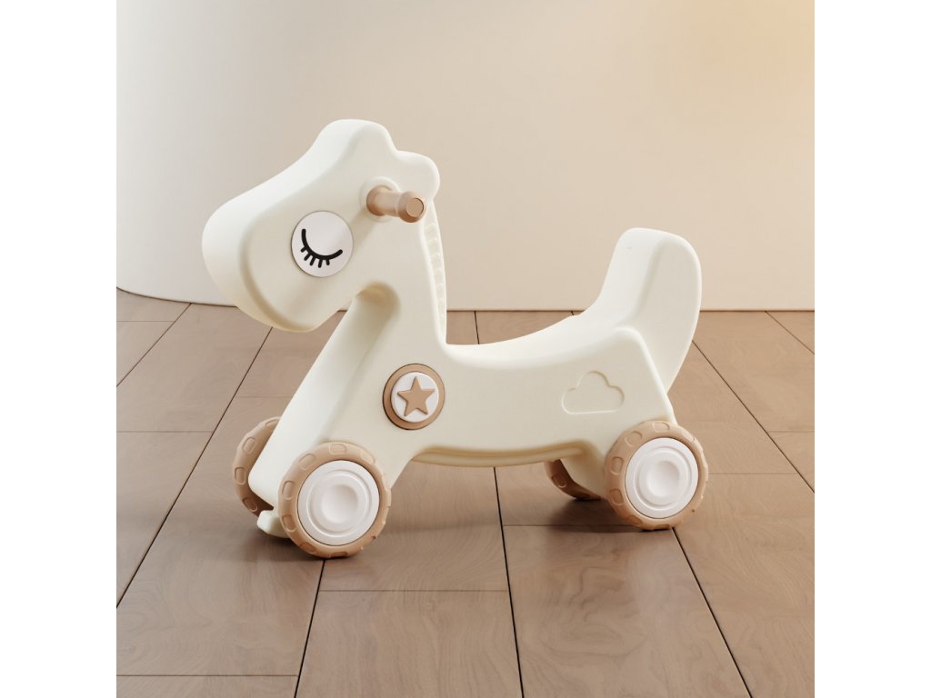 A farok könnyű és lekerekített formájú, így nem kell tartani a véletlen sérülésektől. A műanyag egészségre ártalmatlan, és nem történik baj, ha a kicsi elkezdi rágni a hintalovat. Hintázás közben a kerekek szilárdan ülnek az ívelt alátétben, és nem mozdulnak el. Így még a gondoskodó szülők számára is ideális és biztonságos játék!
