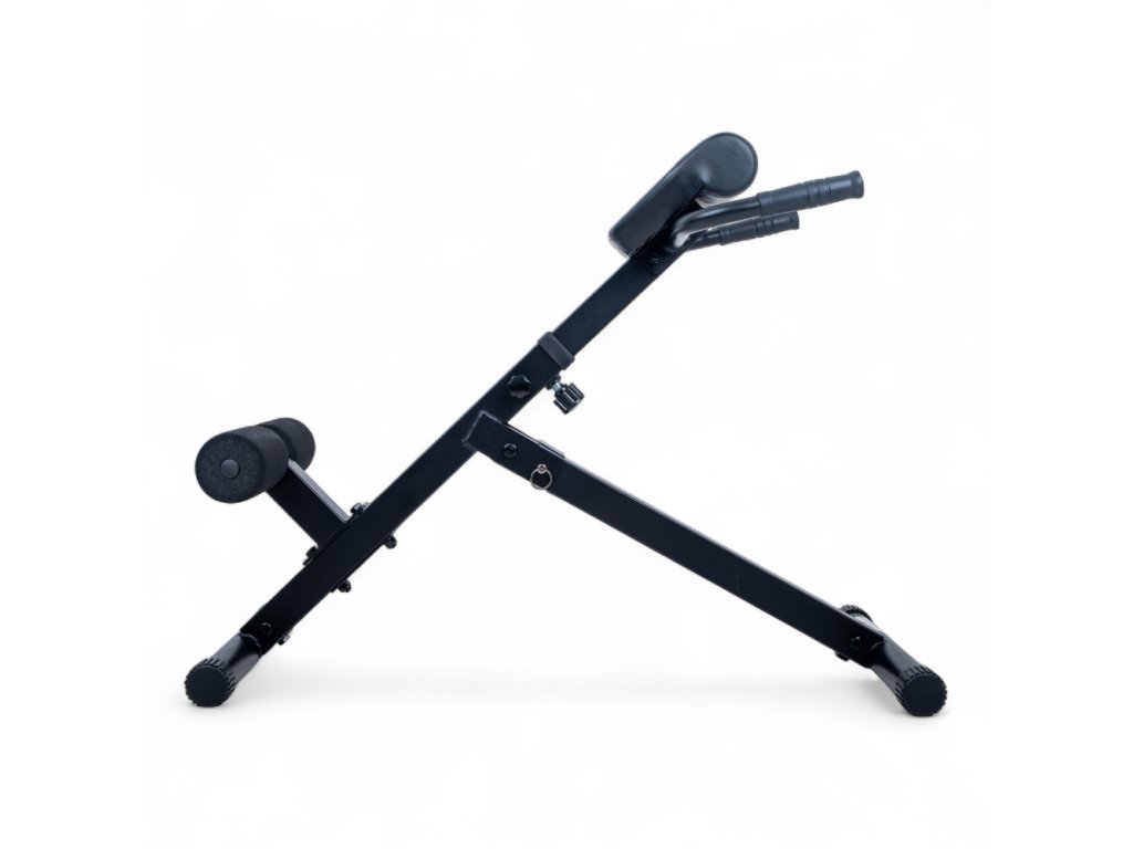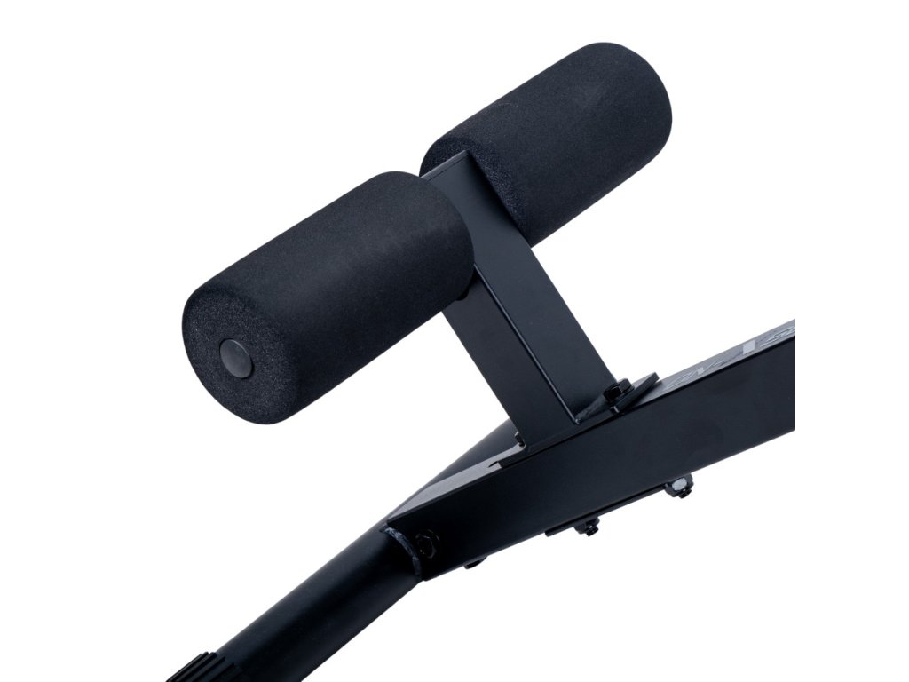 Az 50×50 mm-es vázprofilú, stabil acélszerkezet és a 100 kg-os teherbírás garantálja a stabilitást és a biztonságot, míg a puha háttámla és a habszivacs görgők maximális kényelmet biztosítanak az edzés során. Emellett a praktikus, csúszásmentes kivitelű fogantyúk segítik az egyensúlyozást és a helyes pozicionálást.