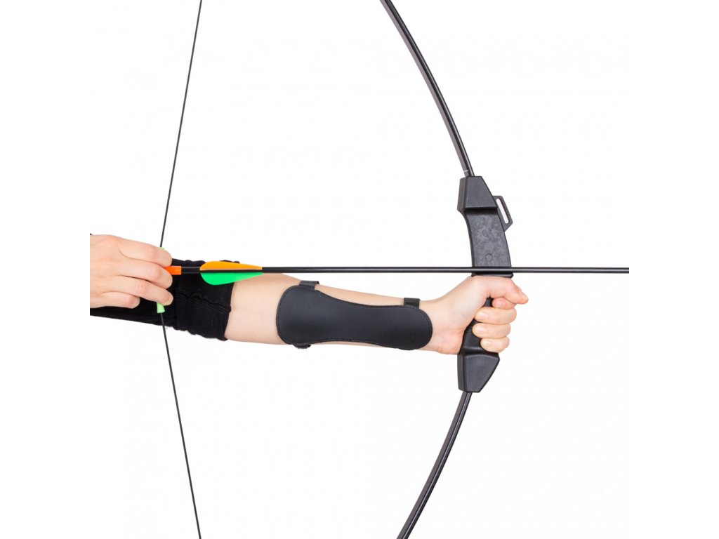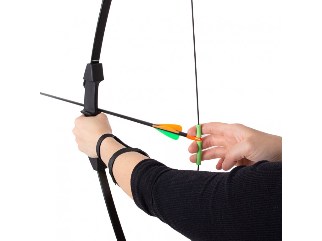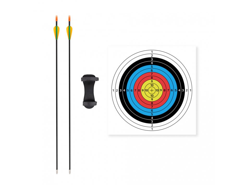 A mindkét oldalon található integrált kifutónak köszönhetően az íj jobb- és balkezesek számára egyaránt alkalmas. A sérülésveszély minimalizálása érdekében a készletet alkarvédő egészíti ki. Továbbá található benne 2 laminált nyíl és egy 40 cm átmérőjű papír céltábla, tehát a fiatal íjászok gyakorlatilag azonnal elkezdhetik az íjászedzést.