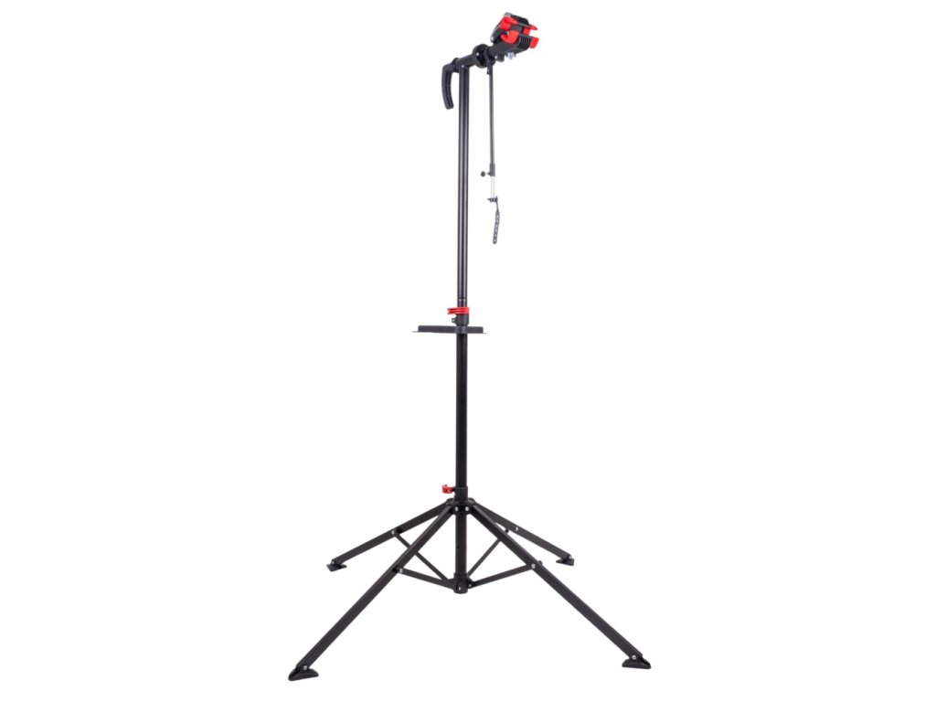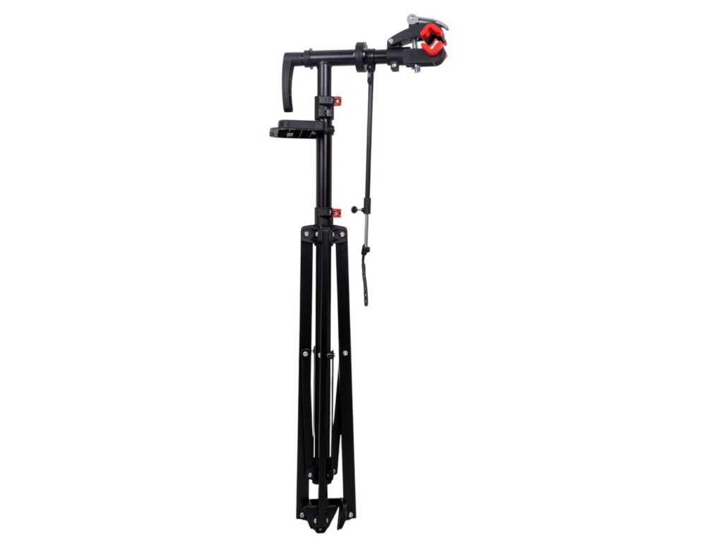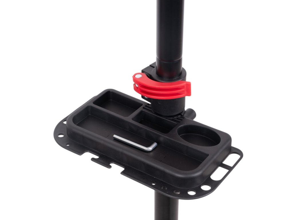 A szerszámtároló polc megóv téged attól, hogy szerszámaid elvesszenek, a stabil lábak 143 x 143 cm-es távolsága pedig biztosítja, hogy az egész állvány ne mozduljon el. A mindössze 6,8 kg súlyú és összecsukható rendszerrel rendelkező állványt könnyű összecsukni, szállítani és pillanatok alatt szétnyitni. Ideális partner a mindennapi szervizeléshez, egyetlen feltétellel: a karbonvázak inkább máshol pihenjenek. Ez az állvány alumíniumra, acélra és megbízható klasszikusokra lett tervezve.