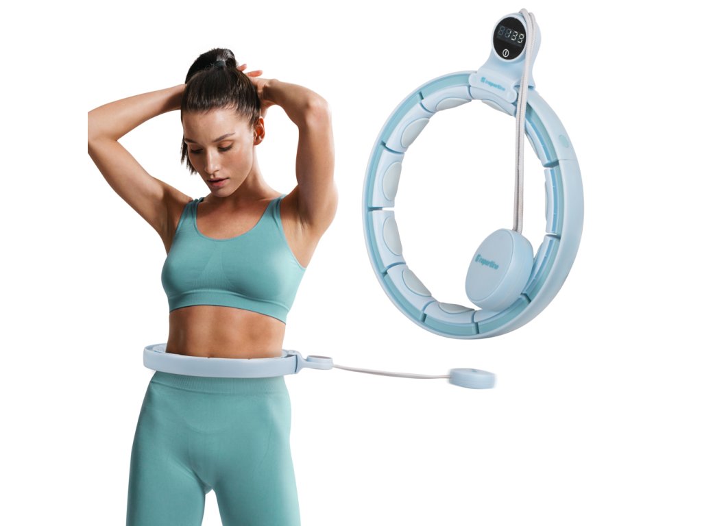 Masszázs karika inSPORTline Weight Hoop Flex 69–117,5 cm, 15 fej masszázsnyúlványokkal, állítható kerület, dupla sín, újratölthető LED kijelző
