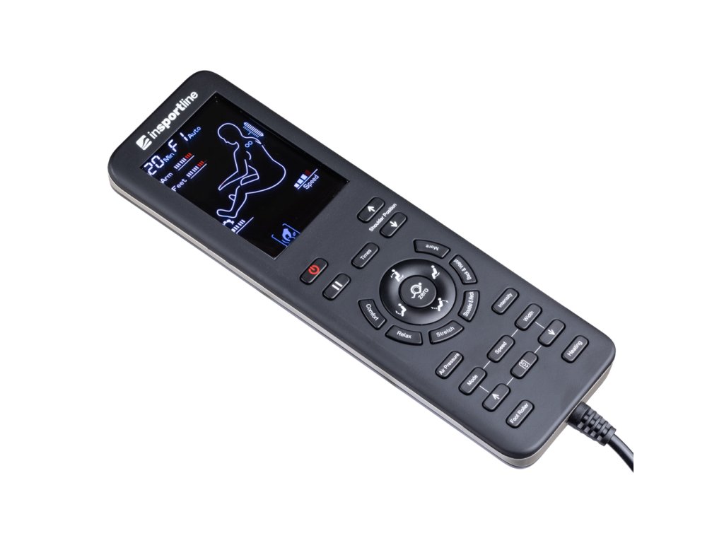 - 12 előre beállított program (kényelmes masszázs, relaxáló masszázs, nyak- és vállmasszázs, hát- és derékmasszázs, teljes testmasszázs, csontkovács masszázs, regeneráló masszázs, meridián masszázs, far- és combmasszázs, relaxáló masszázs a jobb alvásért, teljes testes légmasszázs)