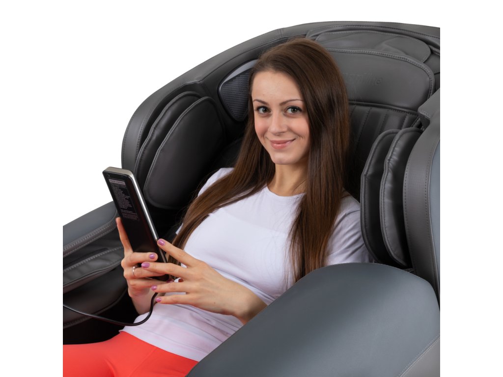 A zenehallgatás a terápia másik interaktív módja, melynek köszönhetően belső békére és jó közérzetre tehetsz szert. A zene és a masszázs kombinációja új, pozitív energia beáramlásával tölt fel. Csatlakoztathatod a masszázsfotelt mobiltelefonodhoz vagy más okoseszközhöz, és bekapcsolhatod kedvenc zenéit. Ezenkívül van egy újratölthető USB-nyílás, így a telefon soha nem merül le!