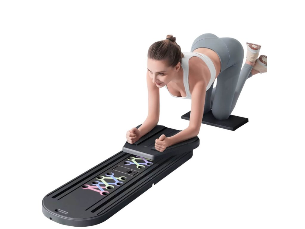 Az okos inSPORTline Pushap Zen multifunkcionális fekvőtámasz és pilates pad egy kis otthoni edzőterem a nappaliban - akár fekvőtámaszokat, guggolásokat, plankokat vagy egy jó kis nyújtást szeretnél gyakorolni. A táblán található színes vonalaknak köszönhetően rögtön tudni fogod, hogy melyik izmot veszed igénybe. Akár a hátadat, akár a mellkasodat, a bicepszedet vagy a tricepszedet erősíted. Csak ki kell választani a megfelelő pozíciót, és máris elkezdheted az edzést. Ráadásul a tábla mozgásérzékelővel ellátott intelligens kijelzővel van ellátva, amely nem hagy tétlenül állni, és minden gyakorlatot számol helyetted!