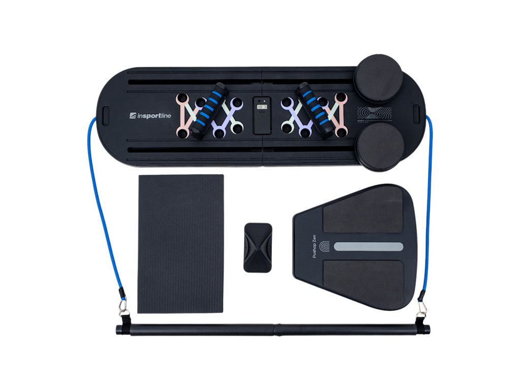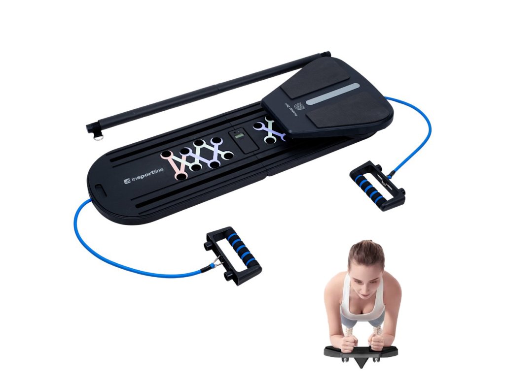 Multifunkcionális fekvőtámasz és pilates pad inSPORTline Pushap Zen, digitális számláló, csúszásmentes habszivacs fogantyúk, fémkarabiner