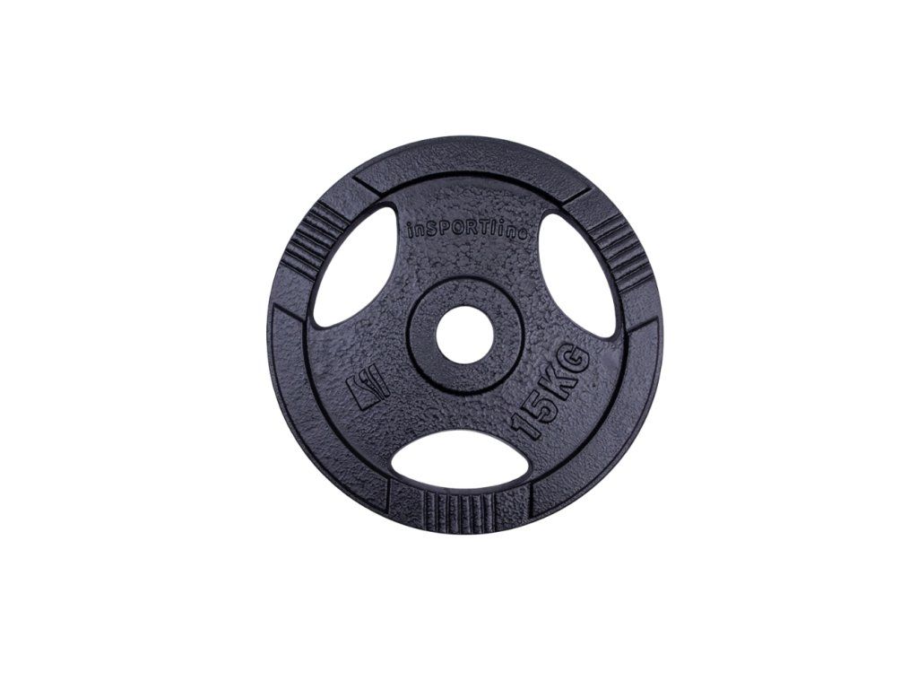 Öntöttvas olimpiai súlytárcsa inSPORTline Hamerton Black 15 kg 50 mm, kopásgátló bevonat, praktikus fogantyú