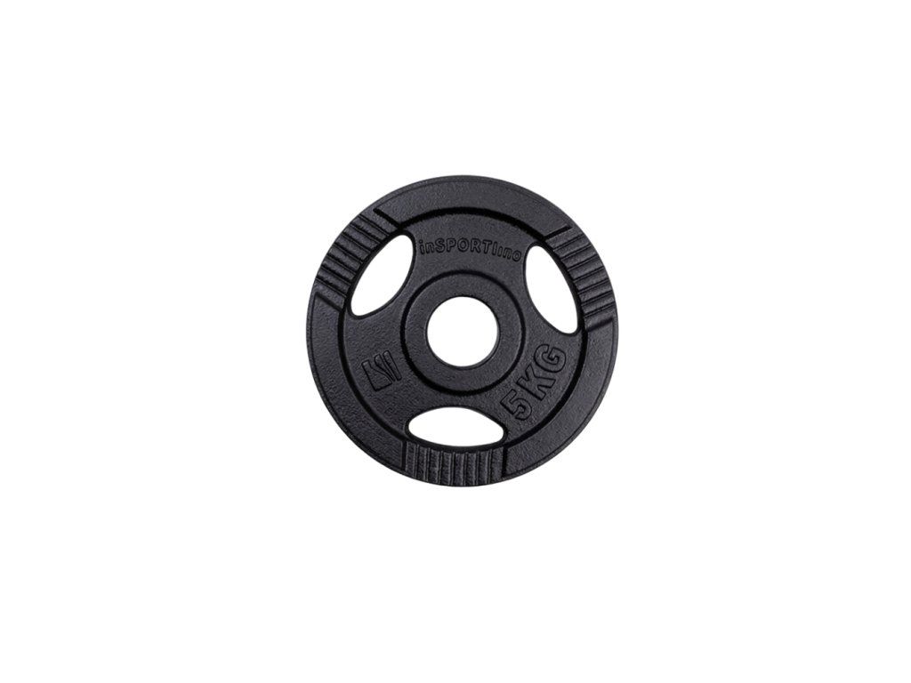 Öntöttvas olimpiai súlytárcsa inSPORTline Hamerton Black 5 kg 50 mm, kopásgátló bevonat, praktikus fogantyú