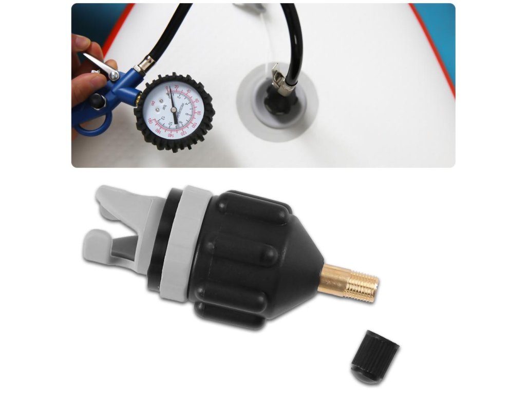 S nafukovacím adaptérem pro ventily paddleboardů inSPORTline můžete pohodlně používat běžnou pumpu s AV ventilem místo té speciální. Tento adaptér je kompatibilní s paddleboardy inSPORTline a umožňuje vám využít jak ruční, tak elektrickou pumpu či kompresor. Protože nafouknutí kompresorem může trvat déle, doporučujeme nejprve použít ruční pumpu a následně dofouknout pomocí kompresoru a adaptéru.