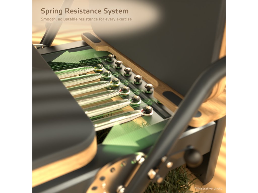 Az akár 79 kg-ig állítható rugós ellenállási rendszernek köszönhetően minden felhasználó a saját edzettségi szintjéhez igazíthatja a terhelést – legyen szó kíméletes bemelegítésről vagy igazán intenzív edzésről. A Comfolder segítségével nyújtó és erősítő gyakorlatok egyaránt végezhetők, fókuszban a lábak, a farizmok, a hát vagy a törzs izmai – szó szerint A-tól Z-ig. A csomagban található pilates box tovább növeli a variációs lehetőségeket, még sokoldalúbbá téve az edzést.