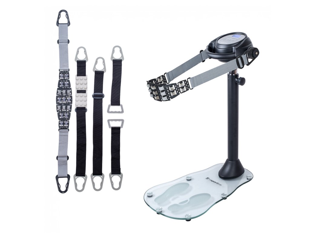 Rezgő masszázs öv inSPORTline TrimBelt, 20 fokozatú rezgésbeállítás, 9 masszázsprogram, 4 féle masszázs öv, üveg talapzat, csúszásmentes lábak