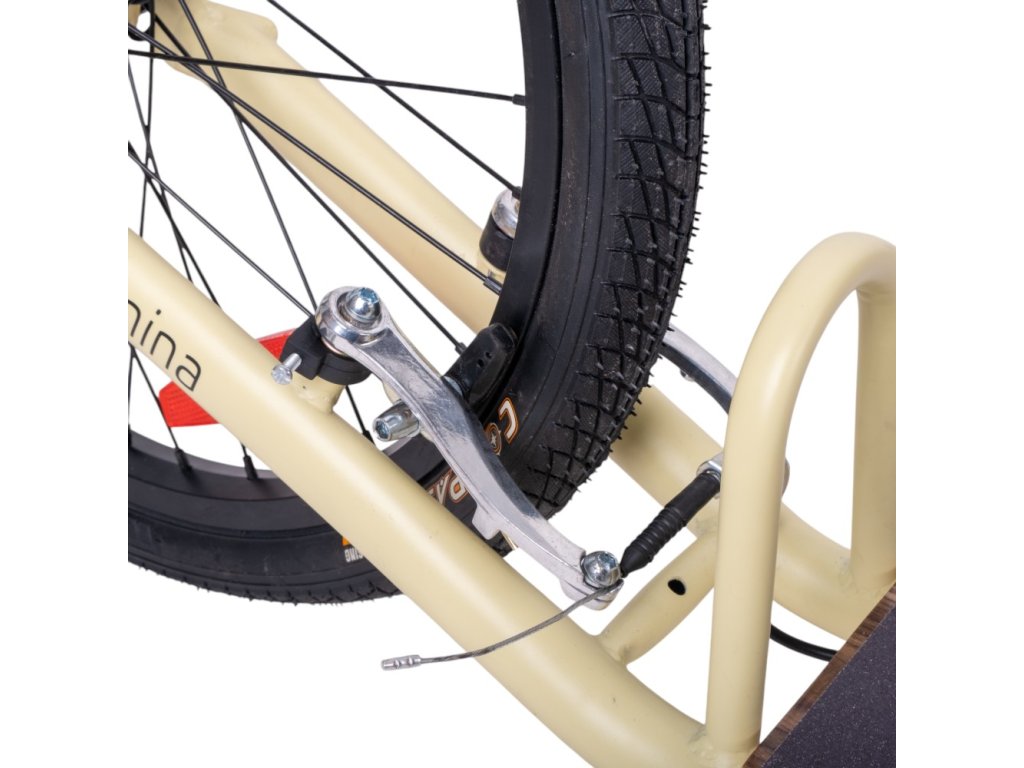 Az elöl található elegáns fonott kosár nem csupán esztétikai kiegészítő - remekül elfér benne minden lényeges holmi, legyen szó a táskáról, a bevásárlásról vagy akár egy pikniktakaróról. A fából készült lábtartó kényelmes lábteret biztosít, miközben stílusosnak tűnik, és egy csipetnyi eleganciát kölcsönöz a rollernek.