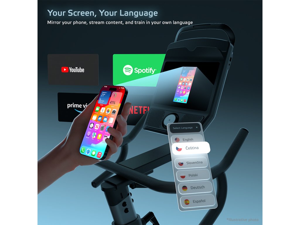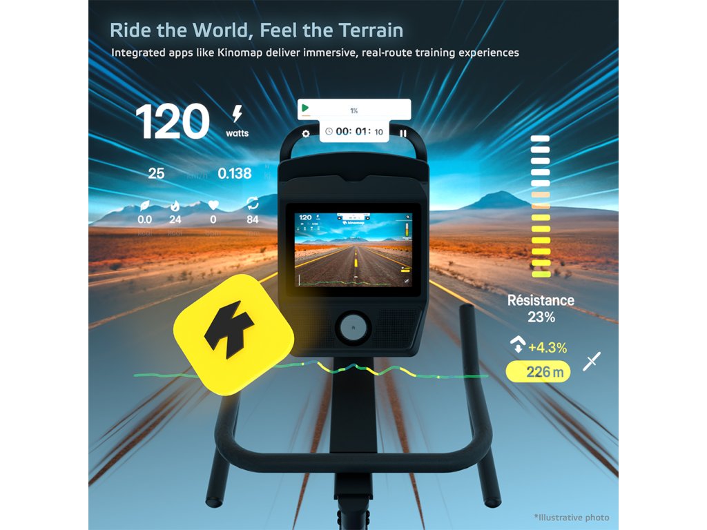 Ez a gép nem csak száraz számokat mutat. Az inSPORTline ZenRoute 1200 szobakerékpár egy intelligens segítőtárs, amely multimédiás központtá alakul, és minden edzést élvezetesebbé tesz. A 10,1" TFT érintőképernyős, angol nyelvű támogatással ellátott kijelzőn nemcsak az összes szükséges értéket, például az időt, a távolságot, a sebességet vagy a pulzust mutatja, hanem olyan alkalmazásokhoz is hozzáférést biztosít, mint a YouTube, a Netflix, a Disney+ vagy a Spotify. Ha kedveled a virtuális világokat, csatlakozhatsz olyan népszerű mobil fitneszalkalmazásokhoz, mint a Zwift, a Kinomap vagy a FitShow, és nekivághatsz az ösvényeknek, hogy versenyezz más sportolókkal, vagy csak élvezd a tájat a képernyőn. Ezáltal az edzésed interaktív élménnyé válik, ami motiválni fog, hogy tovább és tovább pedálozz.