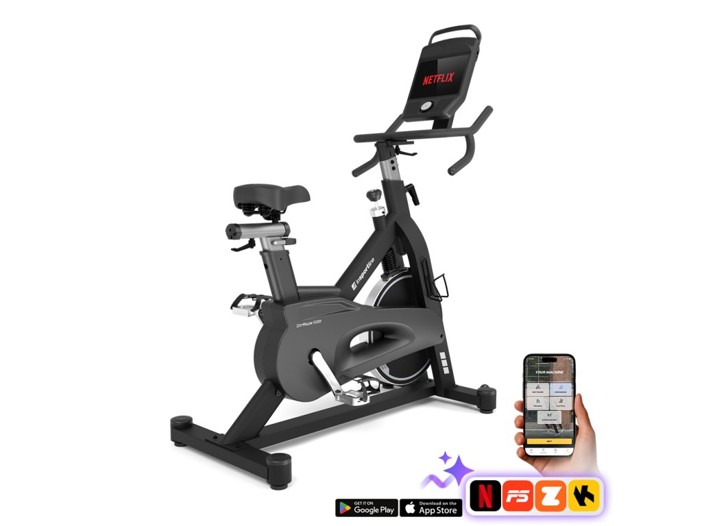 Szobakerékpár inSPORTline ZenRoute 1200, HRC program, előre telepített alkalmazások, italtartó, 10,1" TFT érintőképernyő