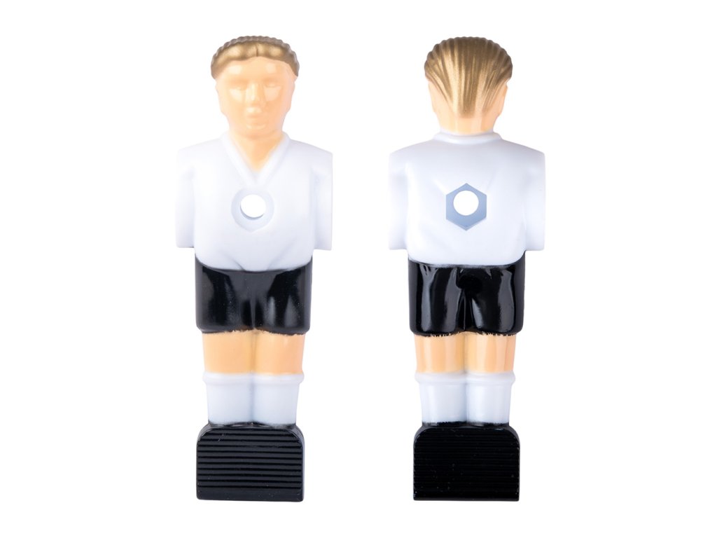 Az inSPORTline Messer csocsóasztalhoz készült, valósághű, igazi focista dizájnú tartalék játékos tökéletes megoldás a sérült vagy elveszett darabok helyére. A figura minőségi műanyagból készül, amely ellenáll a mechanikai sérüléseknek és a kopásnak. A játékos 11,5 cm magas, és alkalmas a 13 mm átmérőjű rudakra. Két változatban kapható, így mindkét csapat számára vásárolhatsz pótjátékost.
