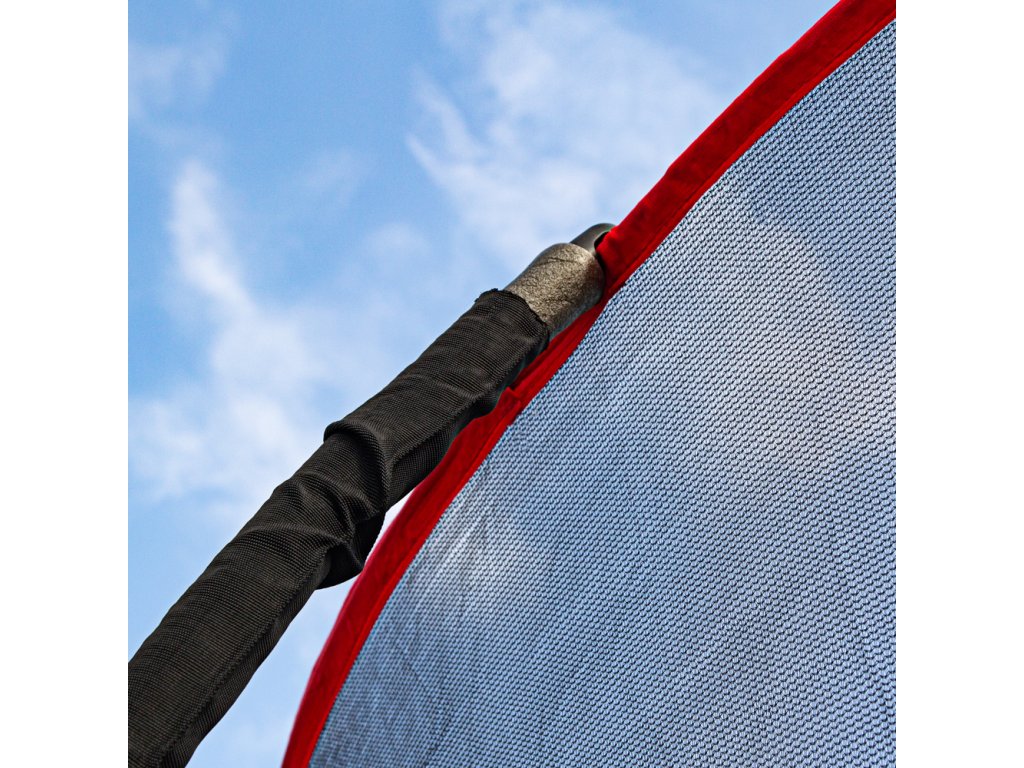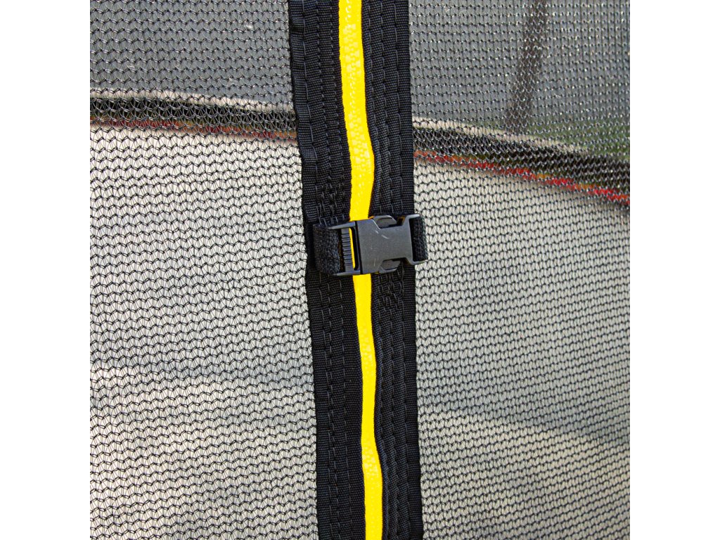 A védőháló megakadályozza, hogy a trambulin ugrófelületén kívülre essen bárki, és így megóv Téged és gyermekeidet az esetleges sérülésektől. Ellenáll a nedvességnek és az UV sugárzásnak, így kültéri használatra is ideális. A bejárati nyílás cipzárral záródik és csatokkal is rögzíthető.