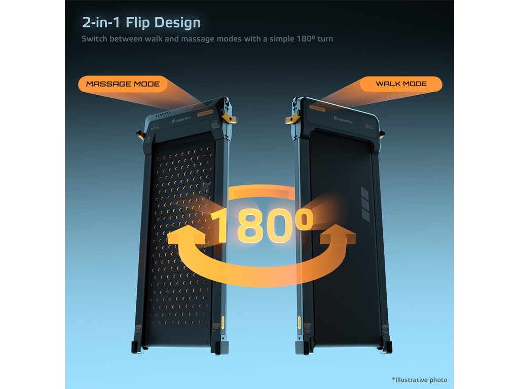 A masszázs gyaloglópad inSPORTline ZenRun NOON egyedülálló módon ötvözi a klasszikus gyaloglást és a talpak relaxáló masszázsát. A kétoldalas futófelületnek köszönhetően kétféle módon használható – az egyik oldal a sétához vagy futáshoz készült, míg a másik oldalon kíméletes masszázs vár. Legyen szó hatékony otthoni kardió edzésről vagy egy hosszú nap utáni megérdemelt talpmasszázsról, az inSPORTline ZenRun NOON hamarosan a napi rutinod nélkülözhetetlen részévé válik.