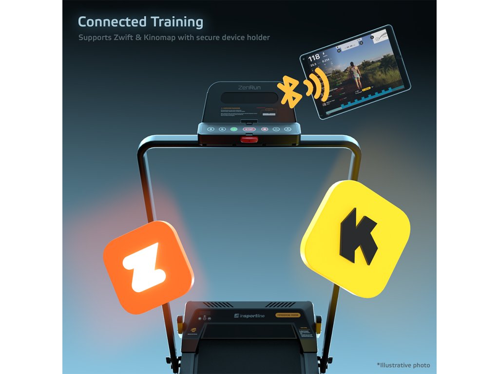 Szeretnél többet kihozni az edzésből? A futópad összekapcsolható a népszerű mobilos edzésalkalmazásokkal, mint a Zwift és a Kinomap, amelyek interaktív élményt kínálnak – virtuális futás valós helyszíneken, edzésvideók és online kihívások segítenek a tempó és a motiváció fenntartásában.
